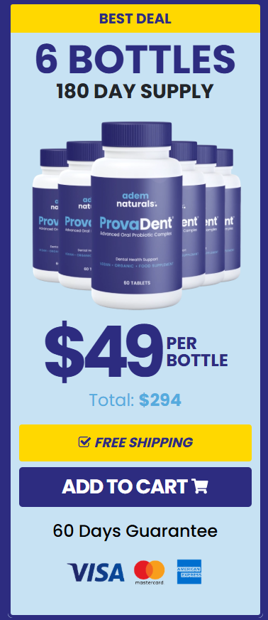 At this moment you can order ProvaDent supplement for 82% OFF + FREE Shipping. This is a Limited-Time Offer and it won’t be available for long.